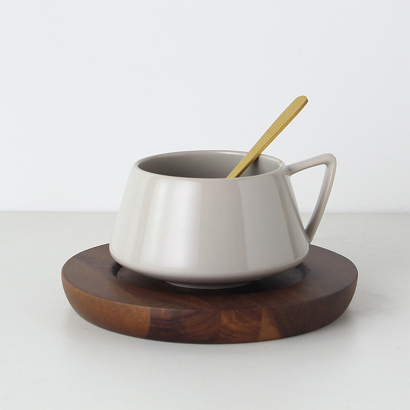 淺灰色【一杯一勺+實木杯碟】