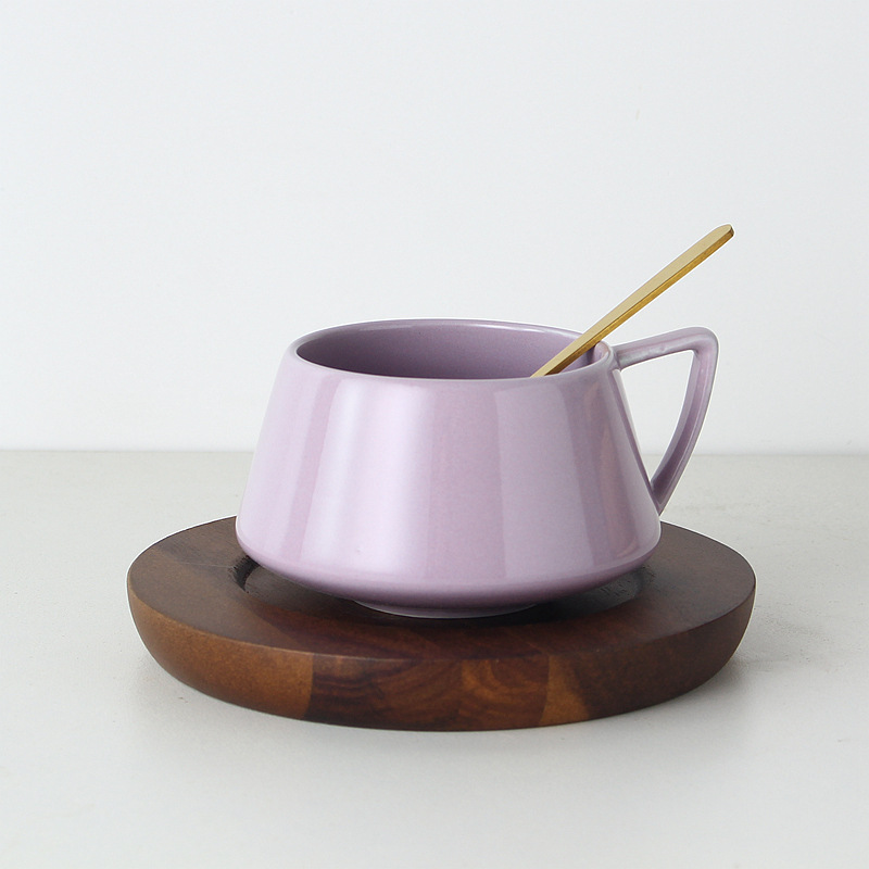 淺紫色【一杯一勺+實木杯碟】