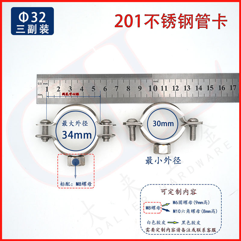 PK7J批發[3隻裝]201不鏽鋼金屬75管卡110 PVC抱箍50管箍32卡扣200