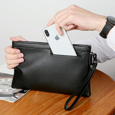 Men's Handbag Large Capacity Super Faux Leather Men's Wrist Bag Portable Phone iPad Travel Bag Wholesale