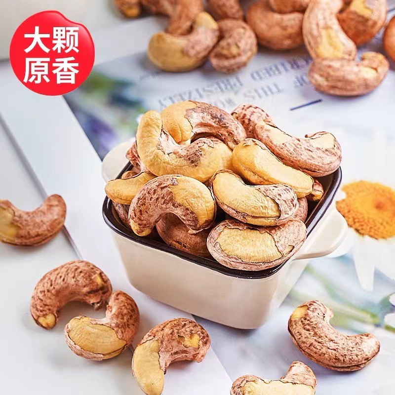 Skin-on cashew nuts, original flavor, salt-roasted nuts snacks, large pieces, Vietnamese specialty, purple skin cashew nuts, bulk wholesale