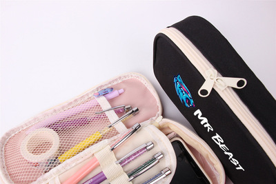 Mr Beast Red and Black Pen Pouch Cartoon Canvas School Supply Pouch with Zipper Student Storage Pen Box