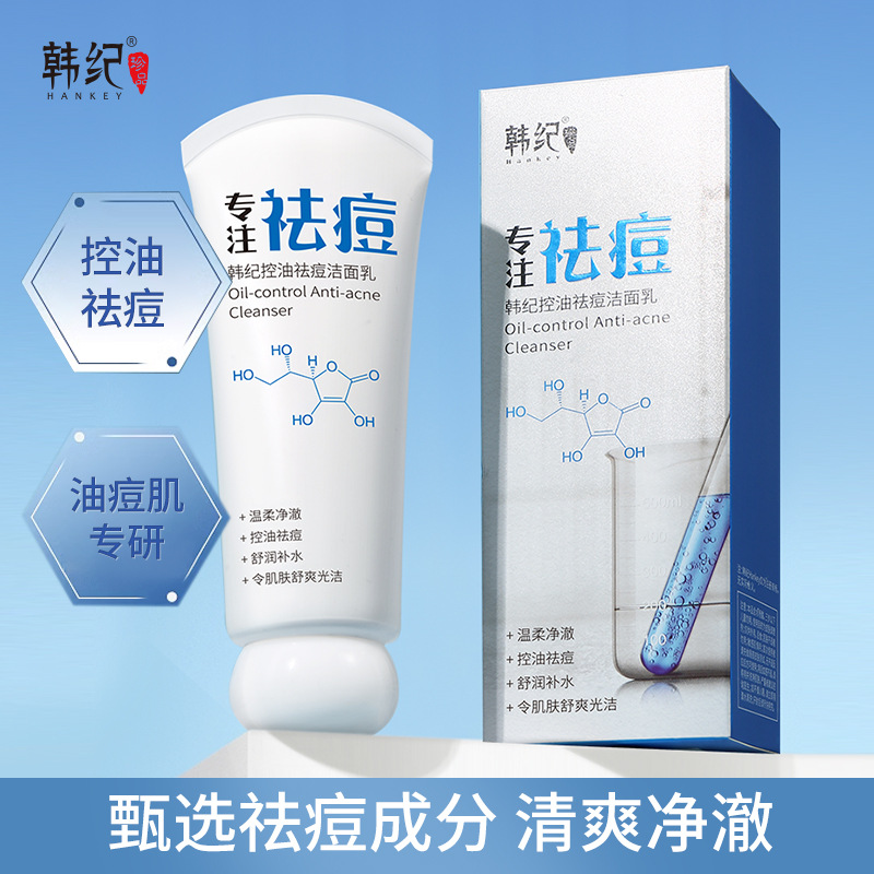 韓紀控油祛痘潔面乳80g清潔保濕補水男女士痘痘肌洗面奶護膚品