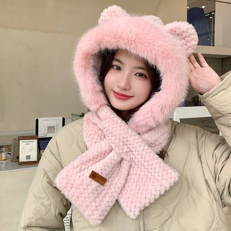 Set of 3 hats, scarves, and gloves for autumn and winter - fox fur, lined, thick, warm, windproof, unisex model
