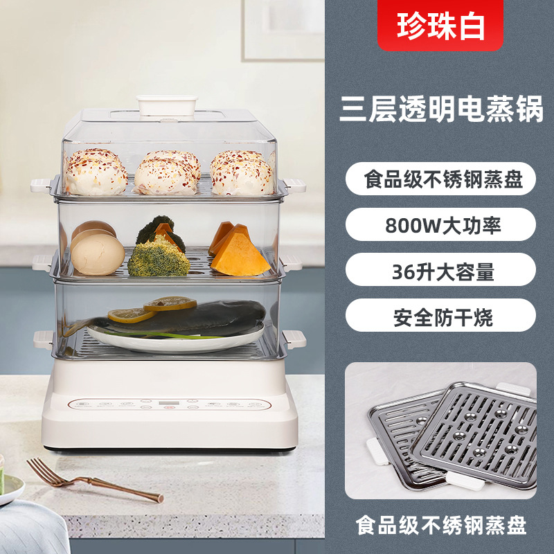 New Electric Steamer Home Steamer Steaming and Stewing Combined Breakfast Machine Multifunctional Double Layer Steamer Multiple Steaming Trays Gift