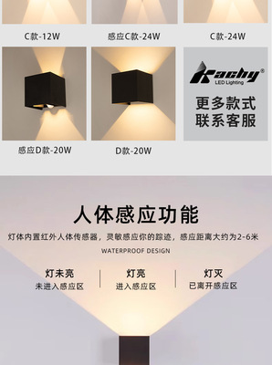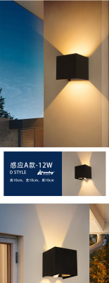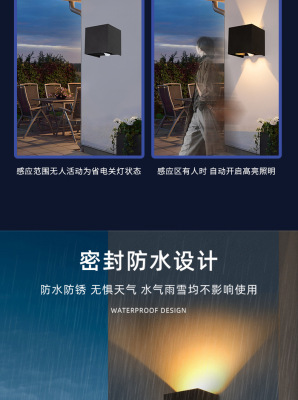 Outdoor Wall Light Dimmable Waterproof Four Leaf Square Wall Light Human Body Sensing Modern Living Room Bedroom Corridor Wall Light