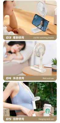 New USB handheld mini portable silent fan, cross-border best-selling foldable neck strap multifunctional fan
