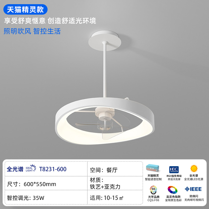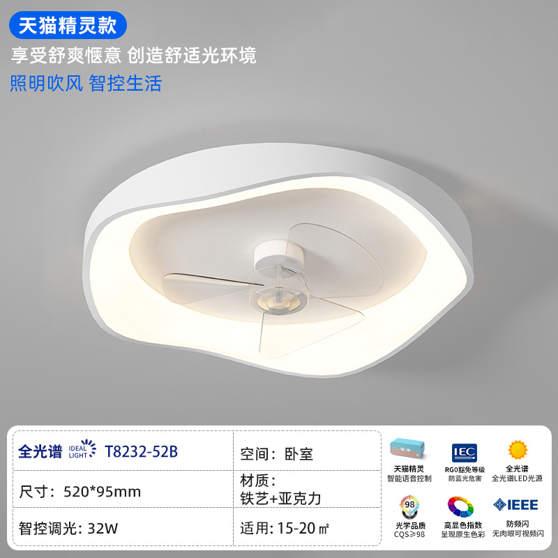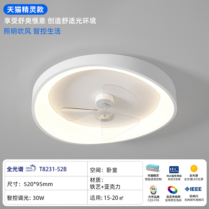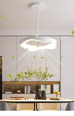 New Minimalist Bedroom Fan Lamp, Personal Artistic Round Flush Mount Ceiling Fan Lamp for Home, Quiet Variable Frequency Suspension Fan Lamp