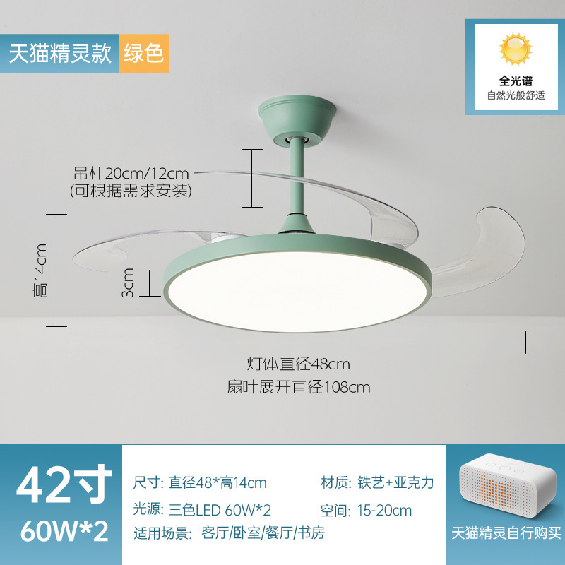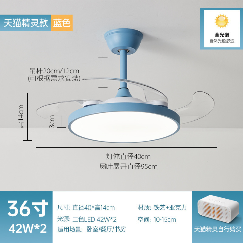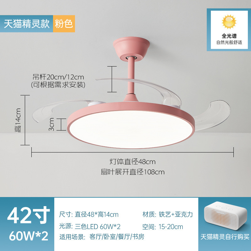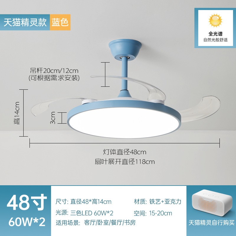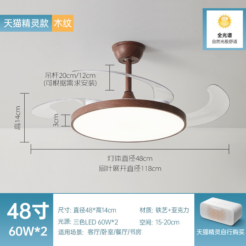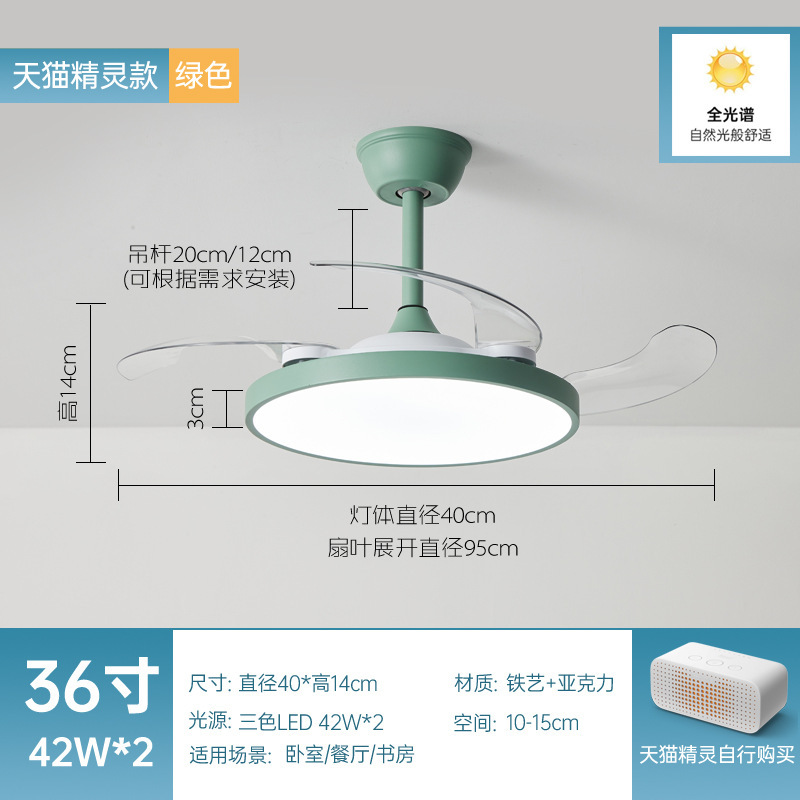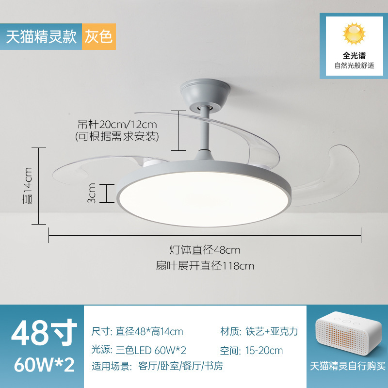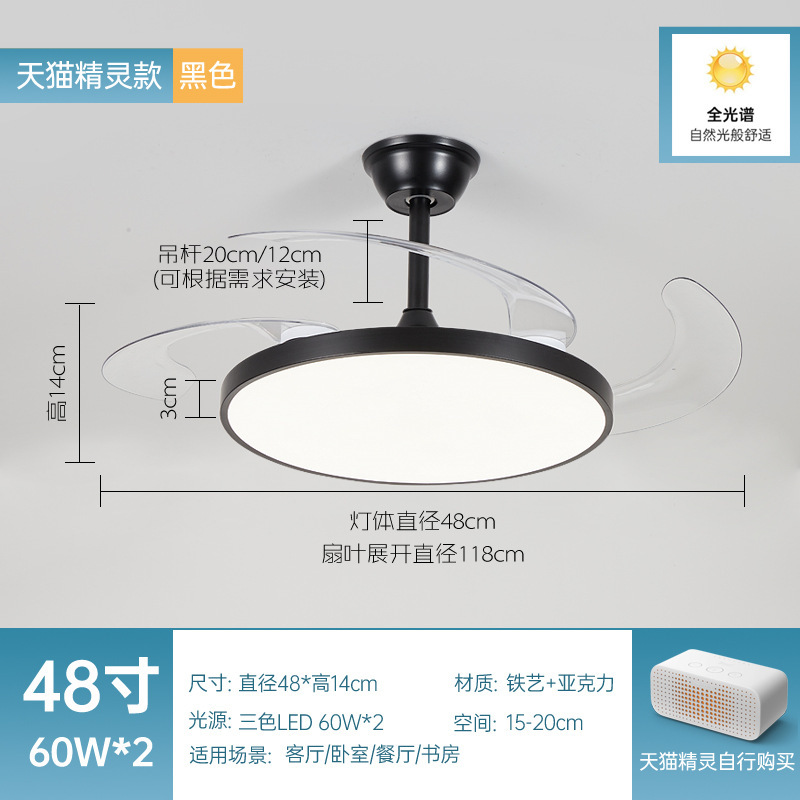 全光譜隱形風扇燈簡約客廳餐廳吊扇燈超薄靜音智能電扇燈中山燈具