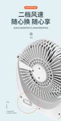 2023 High Airflow Desktop Reversible Silent Student Desk Fan USB rechargeable Office Desk Fan