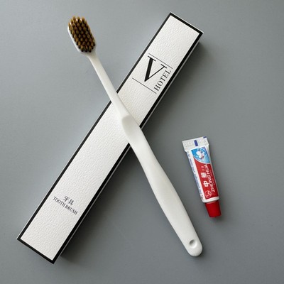 Hotels and Inns use disposable white medium-width head extra soft bristle toothbrushes with gradient flame silk soft white box bag packaging