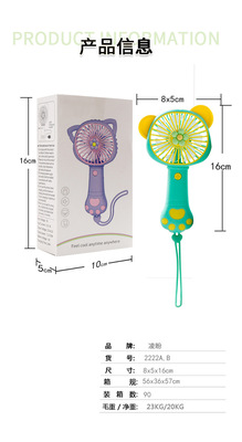 Cartoon animal candy-colored cat claw girl heart USB charging fan Outdoor drawstring portable pocket fan