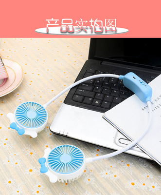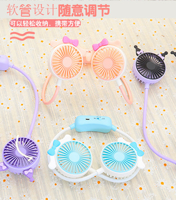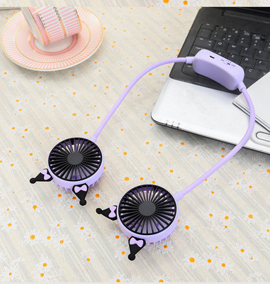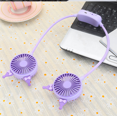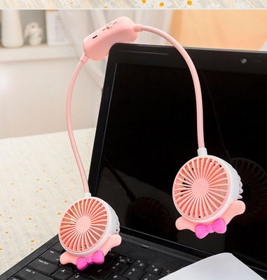 Viral Foldable Portable Lazy Hang-on Neck Fan with Super Cute Cartoon Ears, Dual-Speed USB Charging Small Fan