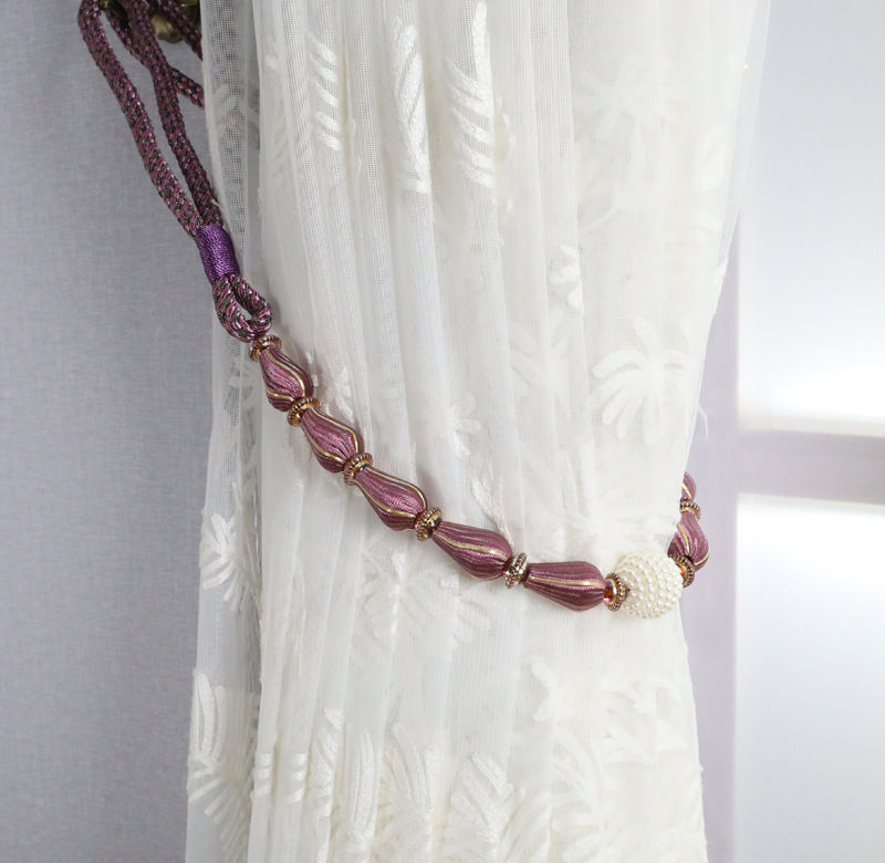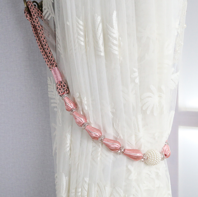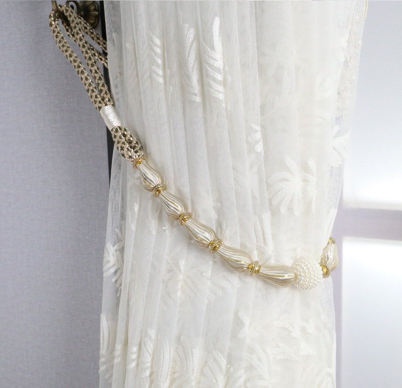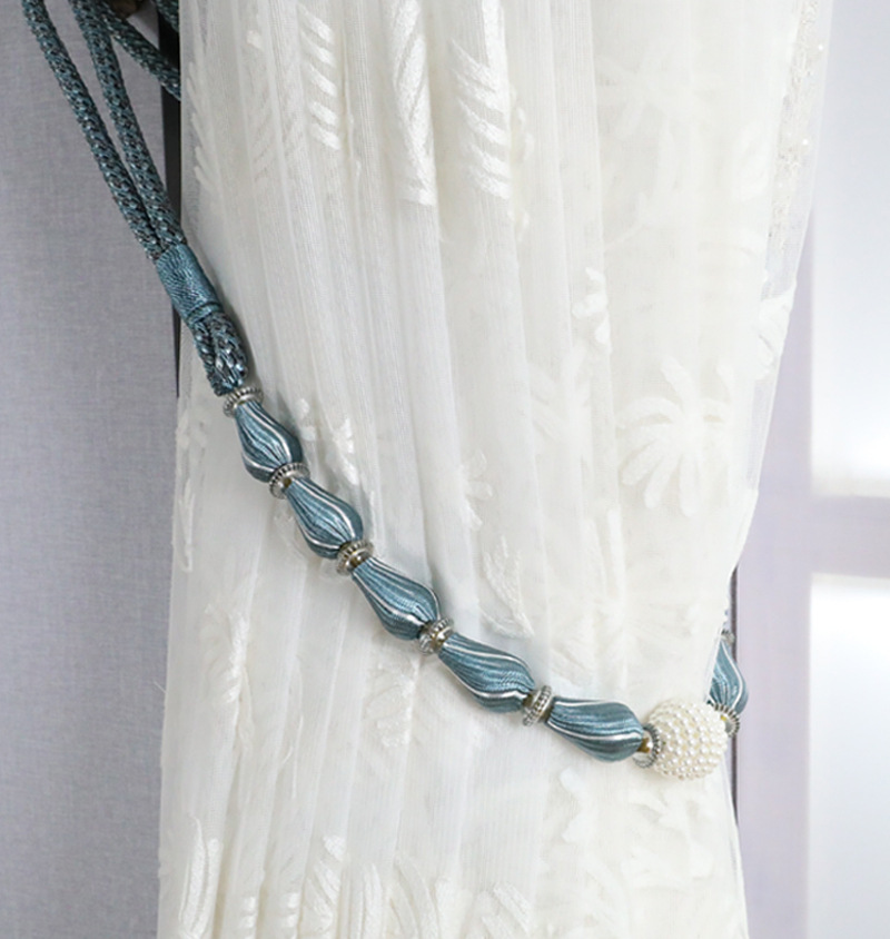 9WOR Simple, Modern, and Luxurious-Style Curtain Tiebacks with Beaded Straps, Buckles, and Storage Ties—Featuring Durable Rubber Core