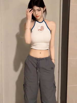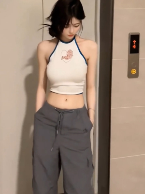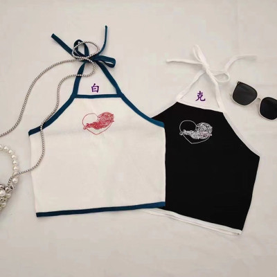 Love vine printed backless halterneck vest for women in summer niche slim slim sleeveless inner wear outer top trendy