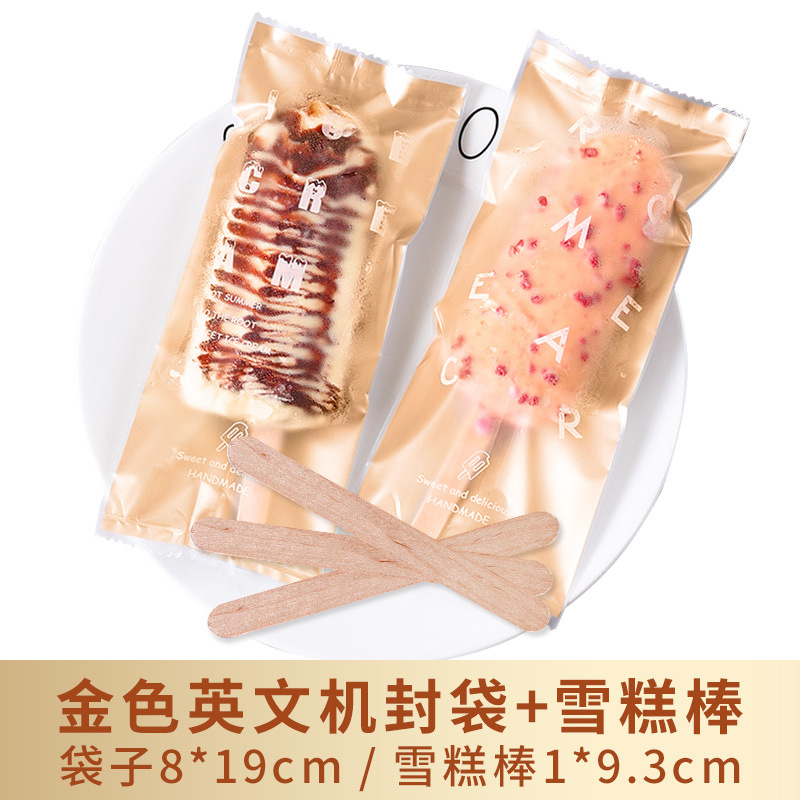 金色機封袋8*19cm+雪糕棒 100個