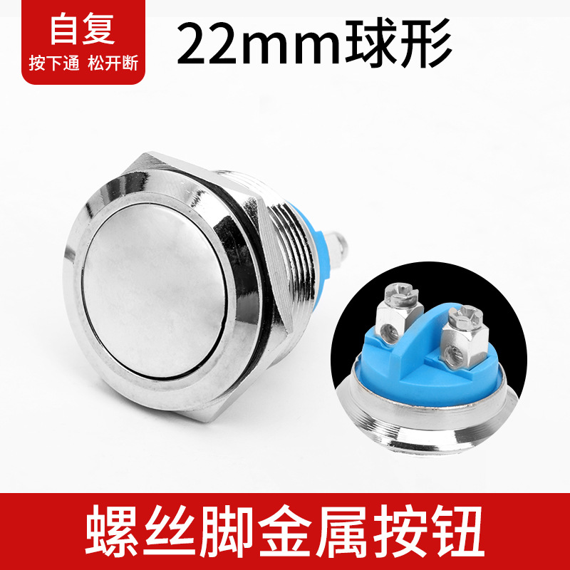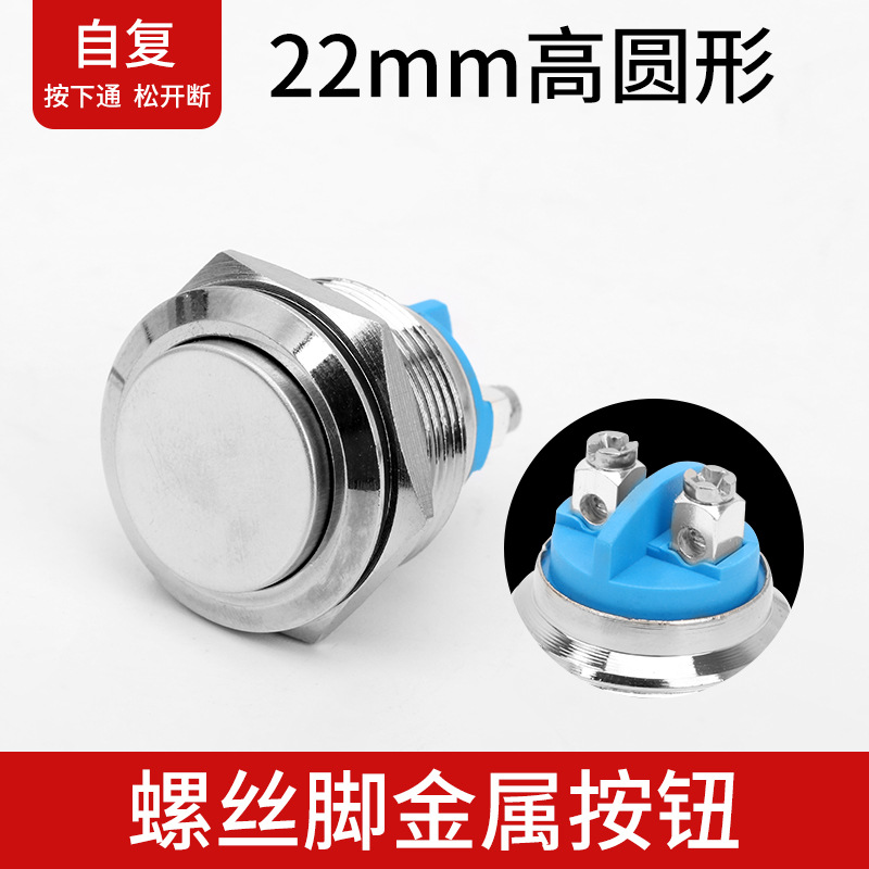 Metal push button switch 22MM self-resetting waterproof start self-locking key with solder legs and screw legs