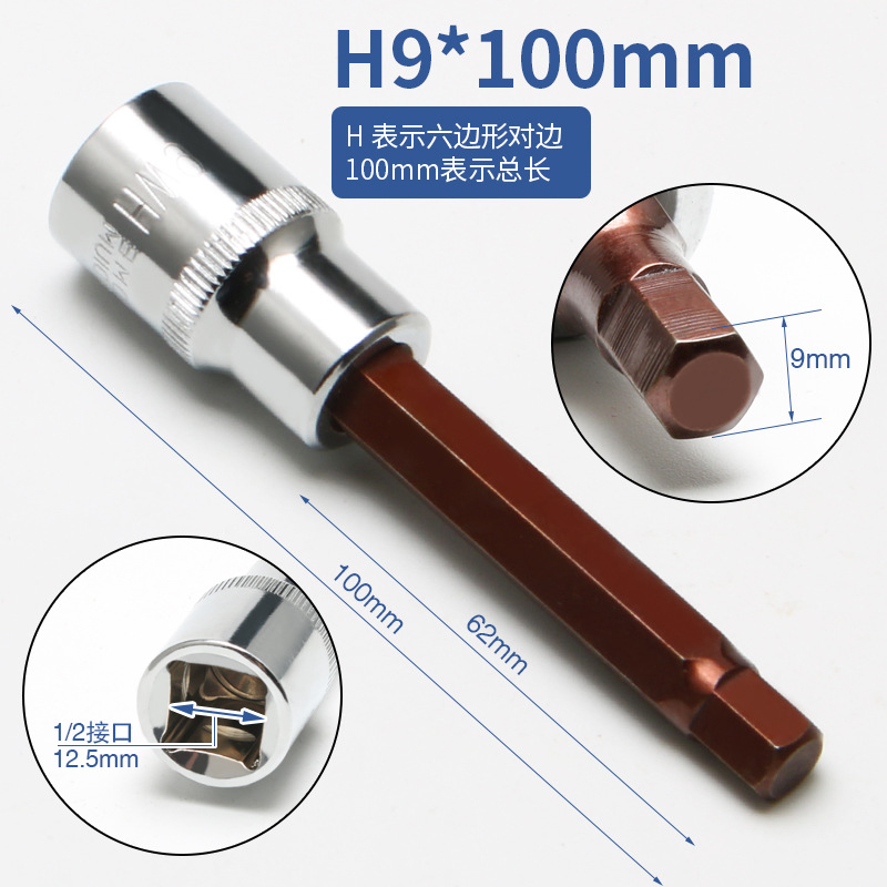 規格:9mm內六角套筒H9總長100mm