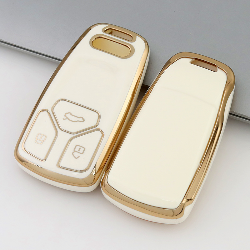 適用奧迪鑰匙套a4l a6l q5l車a3 q3殼q2l包a3l扣q7女a8金邊鑰匙包