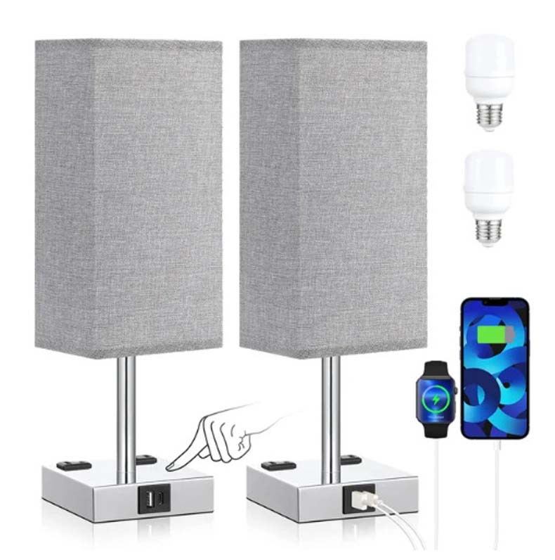 Cross-border exclusive Amazon fabric desk lamp with touch dimming A+C USB 2-port AC plug for bedroom nightstand light