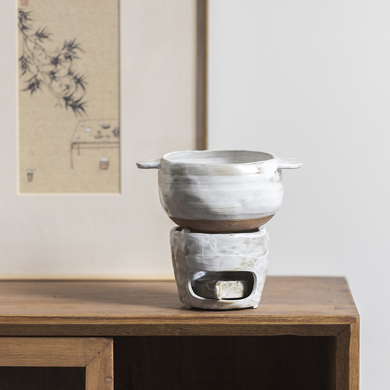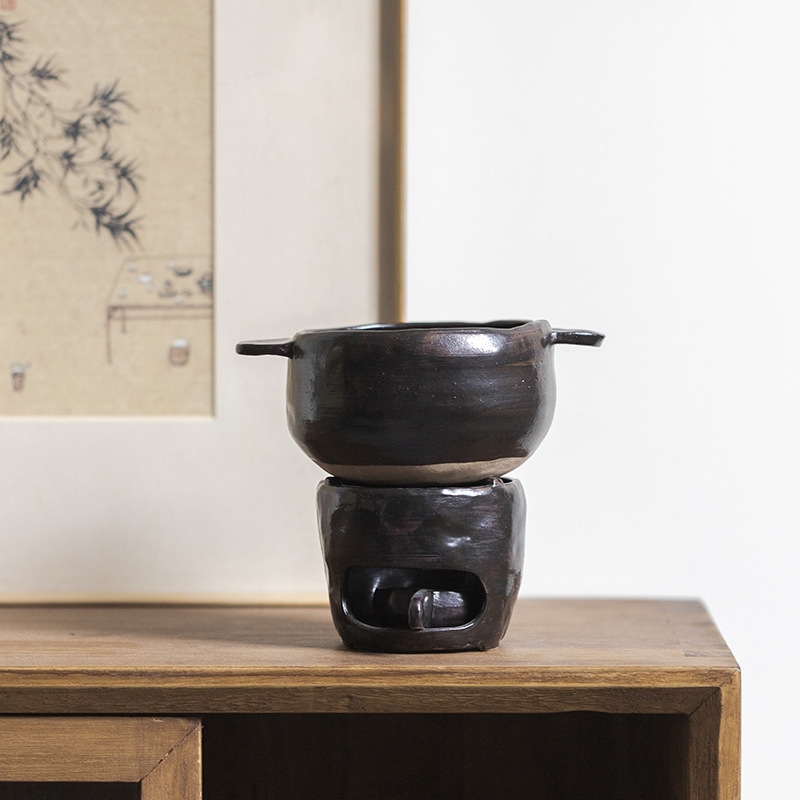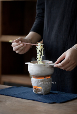 Simple rustic unglazed instant noodle pot small cooking pot retro mini portable dry pot with open flame candle alcohol stove