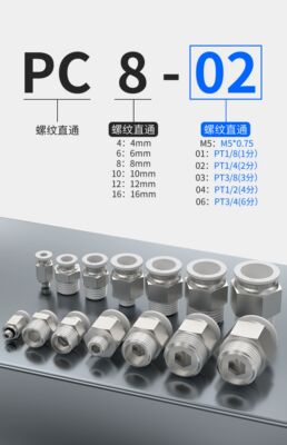 Factory Direct Supply External Thread Straight Tubing Fitting PC8-02/10-04 Pneumatic Quick Coupler Brass Fitting