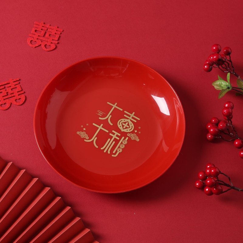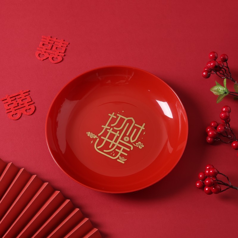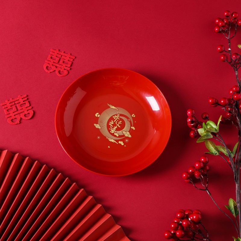 Joyful housewarming fruit platter, red color, moving into a new home, new home decoration and arrangement, opening ceremony festive dried fruit bowl, candy snack tray