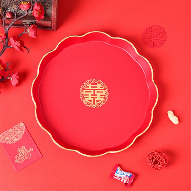 Wedding Fruit Bowl Red Festive Red Celebration Tray Snack Nuts Candy Plate Home Living Room Coffee Table Tea Tray Fruit Bowl