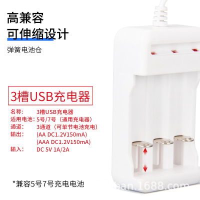 5th Battery Charger for Toy Batteries: 5th & 7th Size Rechargeable USB 3-Slot Charger—Factory Direct Supply