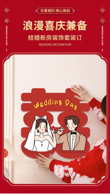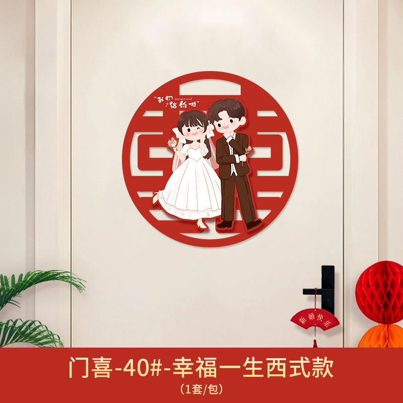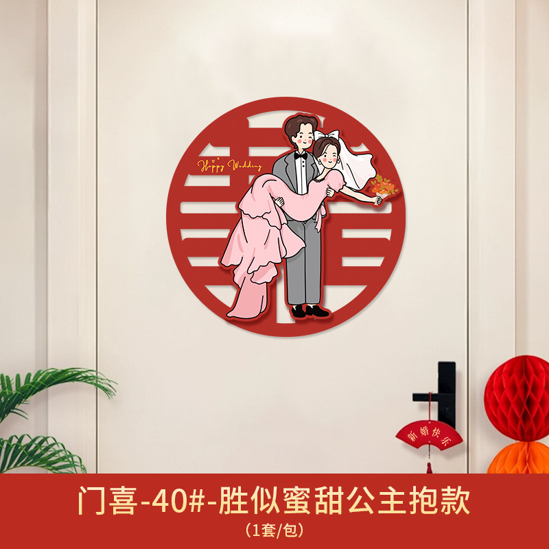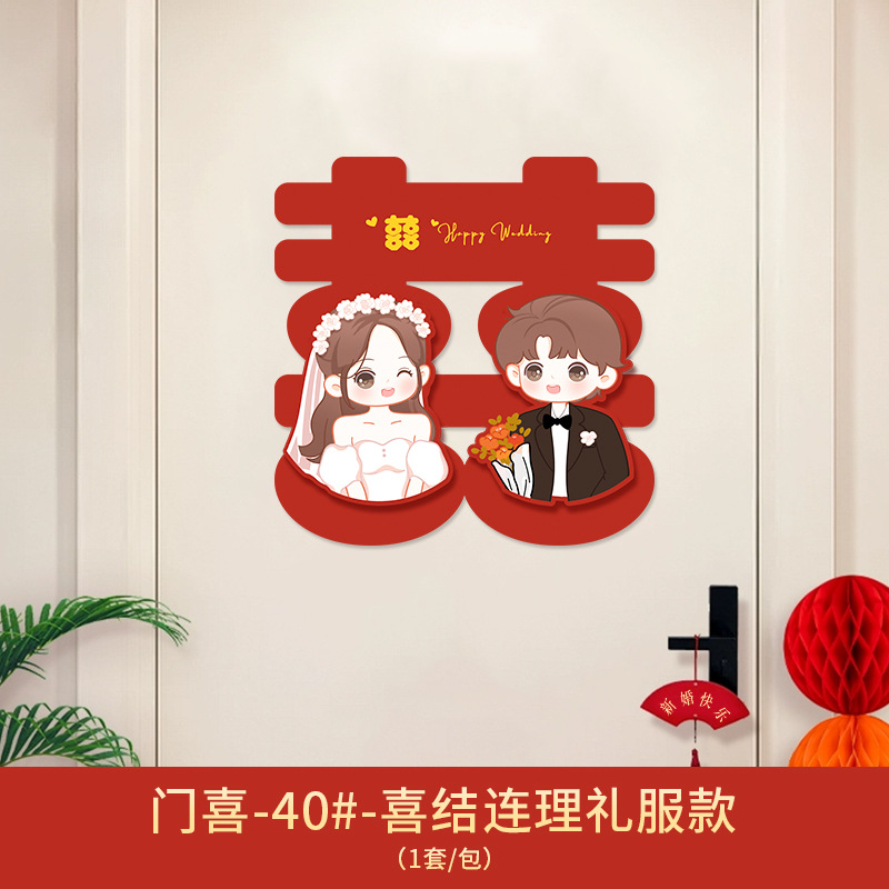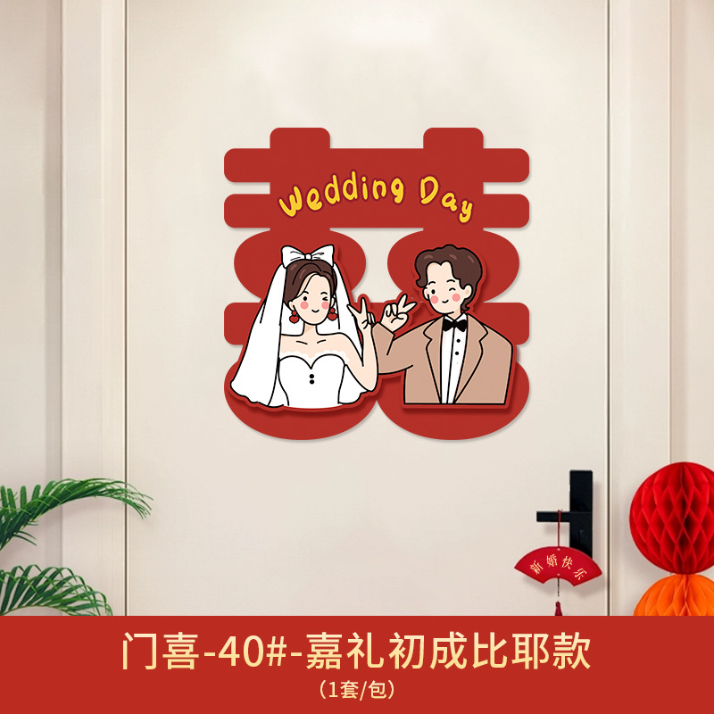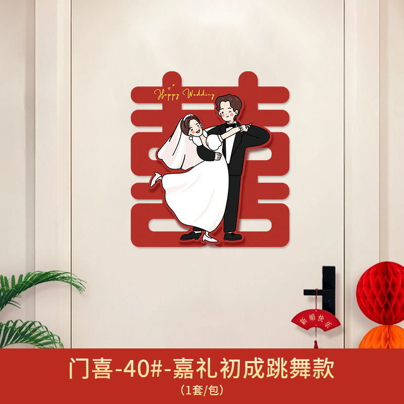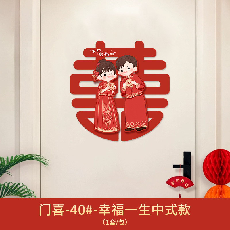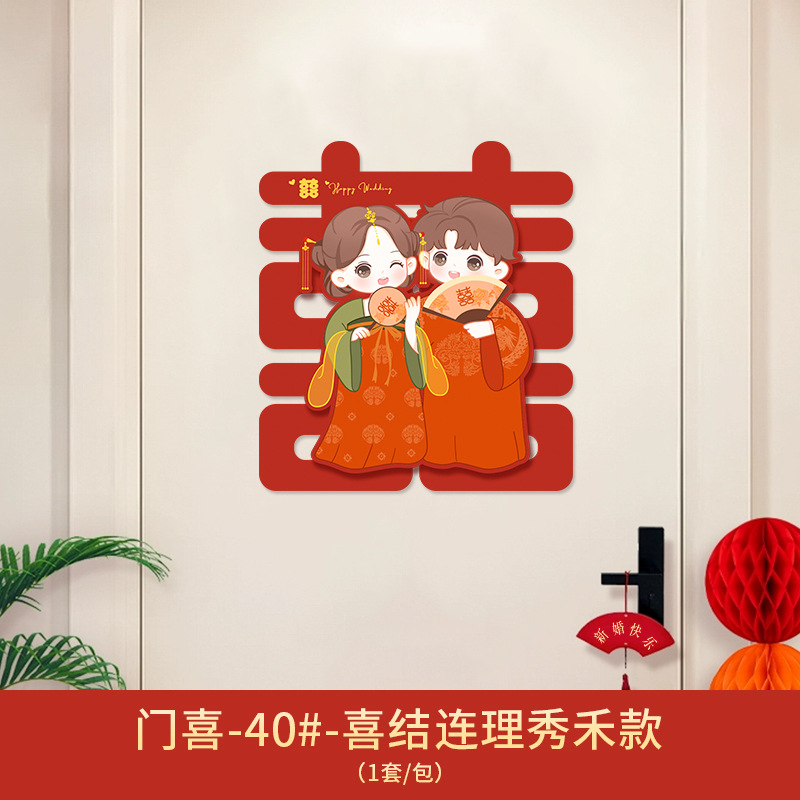 Xǐ character sticker for wedding, door sticker for wedding room decoration set, wedding groom and bride bedroom door entrance door decoration