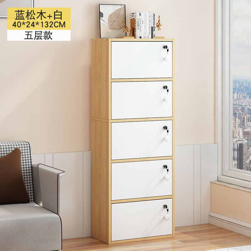 帶鎖書櫃陽台置物收納櫃辦公室儲物櫃帶門簡易學生書架家用小櫃榕