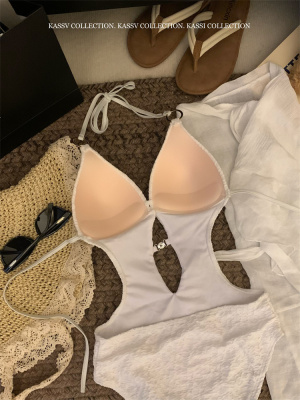 Real shot of one-piece bikini, sexy swimsuit, slimming belly-covering resort swimsuit for women, hot spring, high-end sense