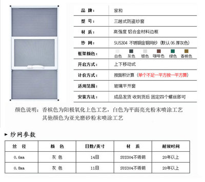 型號:鋁合金邊框不鏽鋼金剛網紗窗