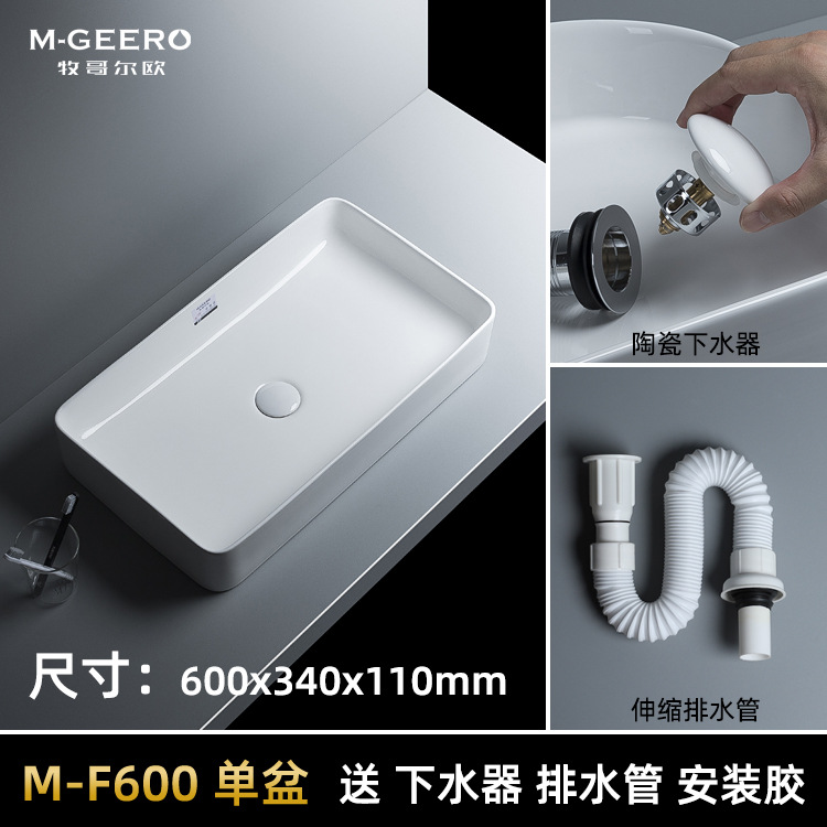 Nordic-style Square Washbasin for Countertop Use, Household Vanity Sink—Available in Wide and Narrow Versions, 60 cm Long; Creative Ceramic Basin Ideal for Small Balconies