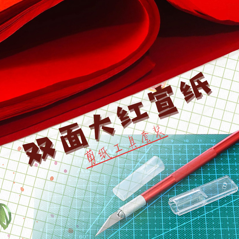 Red Xuan Paper Engraving and Paper Cutting Tool Set, Paper Carving Knife, Handmade Journal Pattern Templates, Student Craft Mat