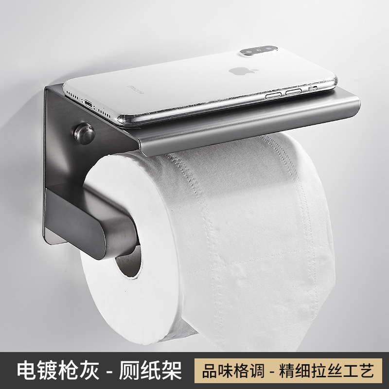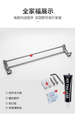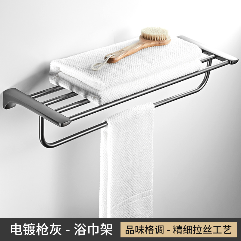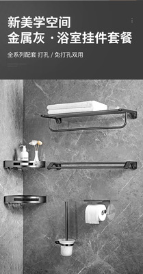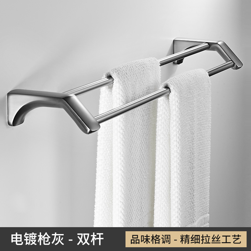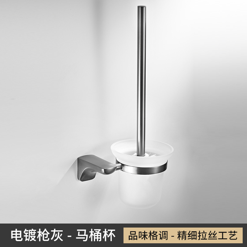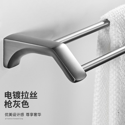 Gun Grey Towel Rack Set Wall-Mounted Bathroom Towel Bar Toilet Brush Bathroom Single Rod Towel Rack Hook
