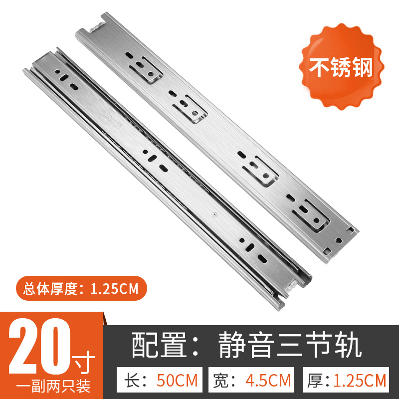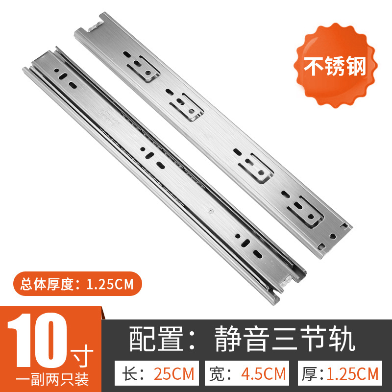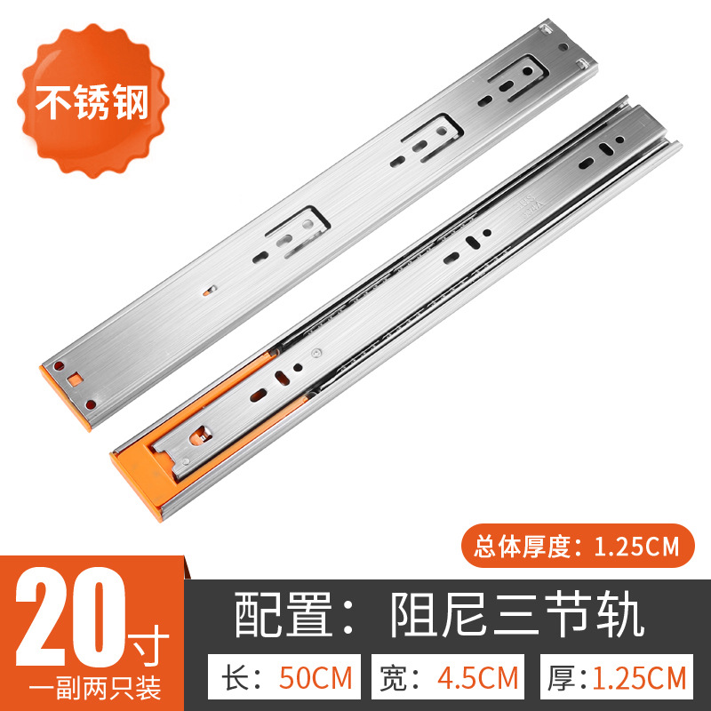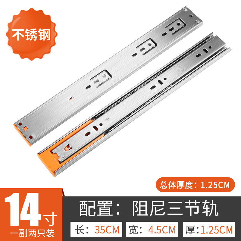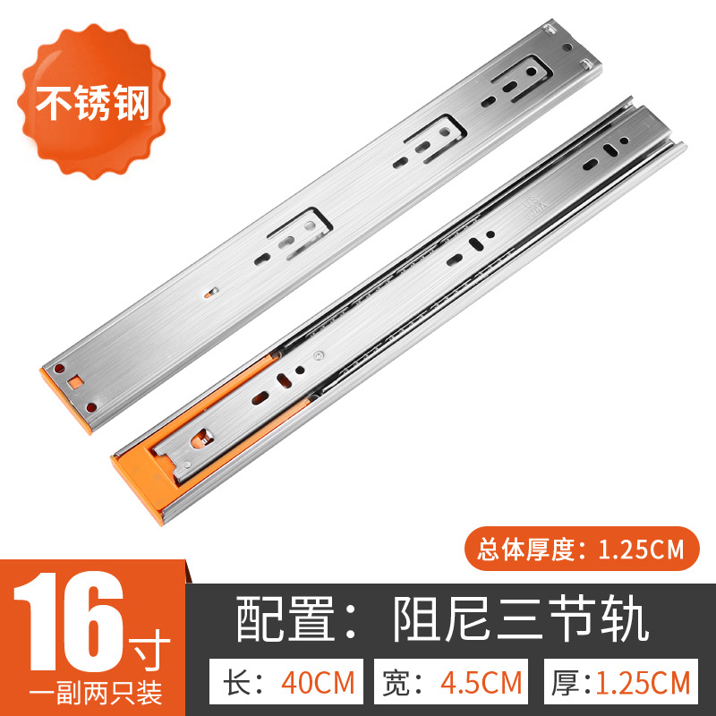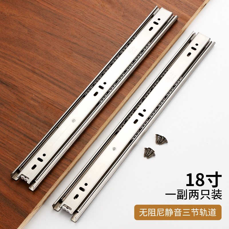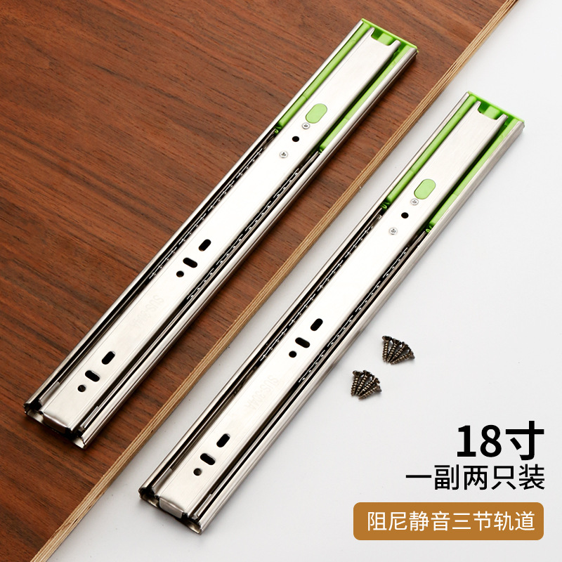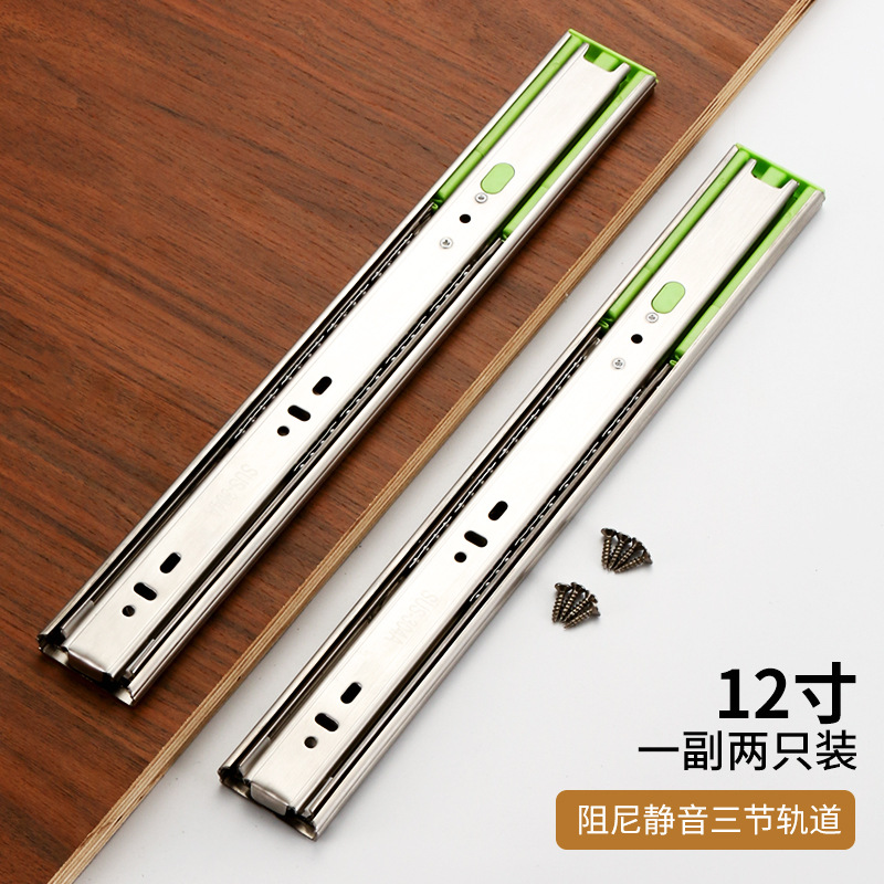 Factory wholesale: Stainless steel three-section slide rails, thickened, quiet, three-fold, soft-close damping guide tracks for wardrobe drawers