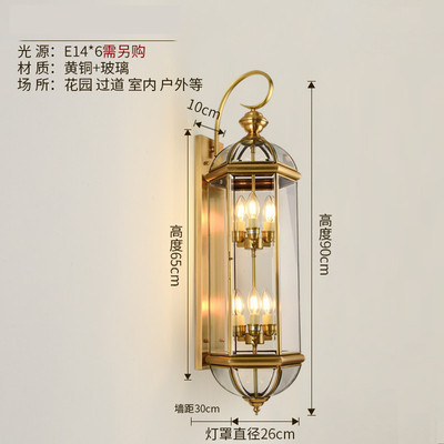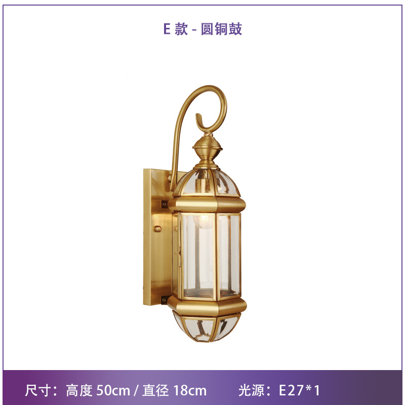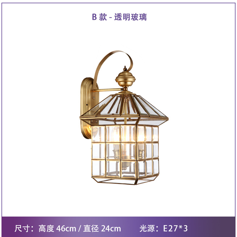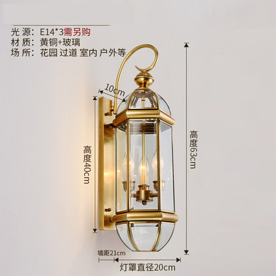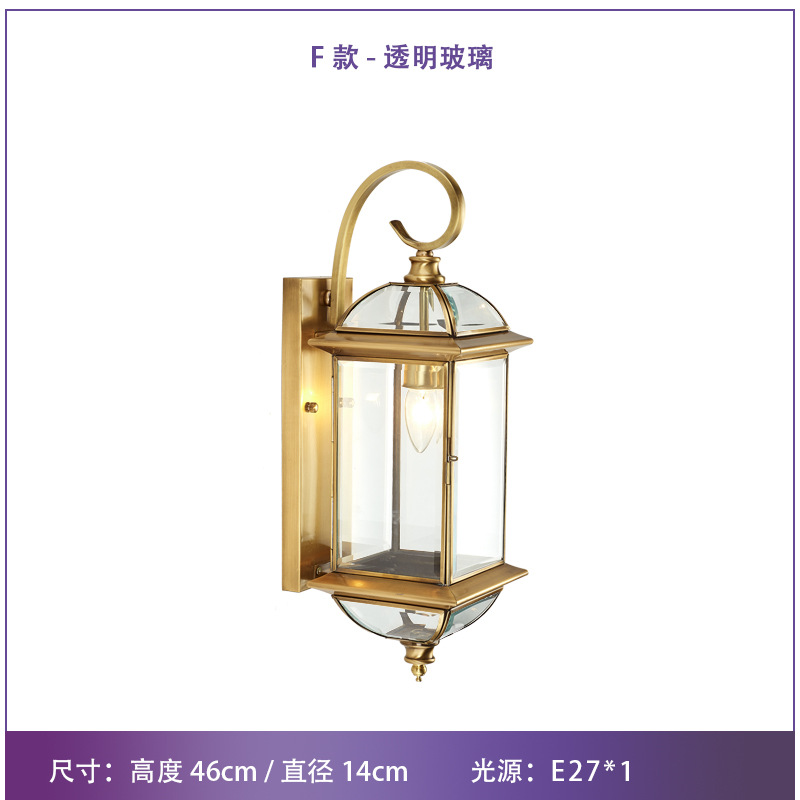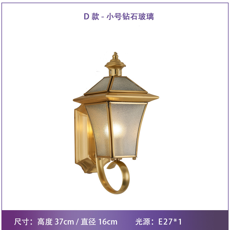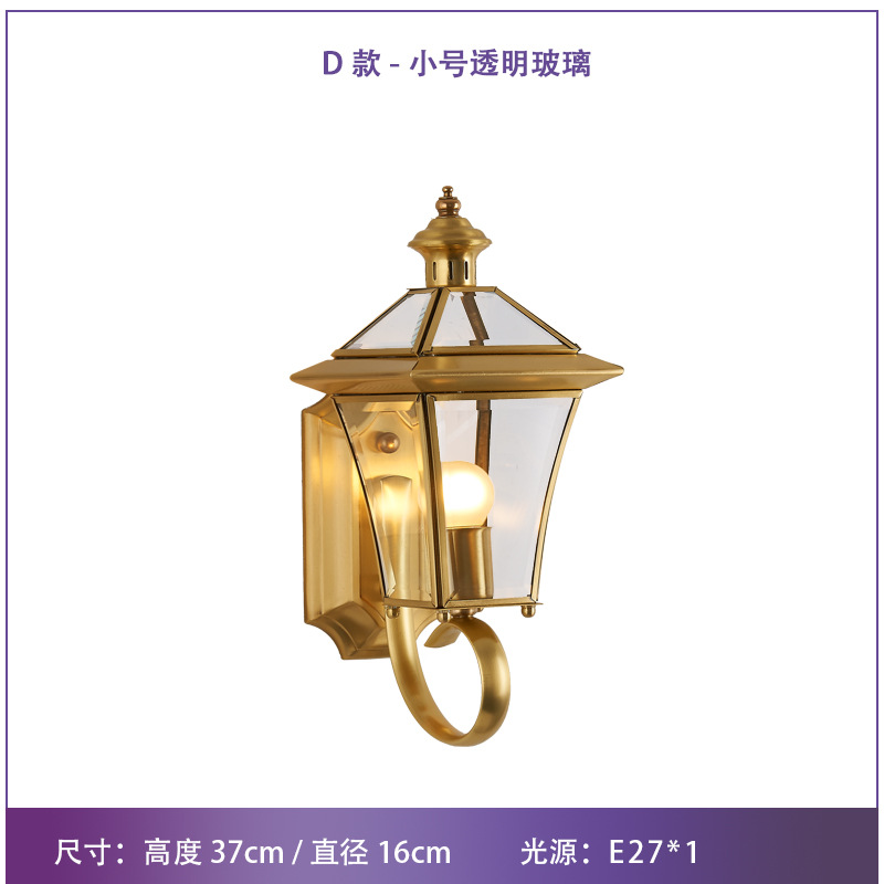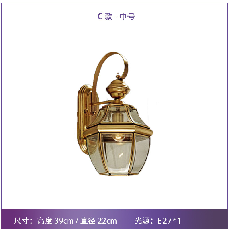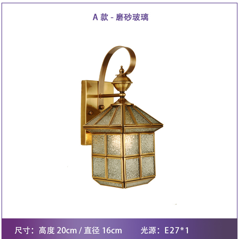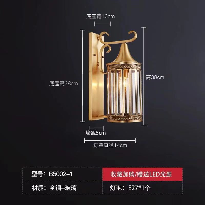 Solar-powered outdoor wall light, waterproof, European-style, all-copper design—perfect for balconies, patios, villas, courtyards, and as decorative lights on either side of gateposts or main entrances.