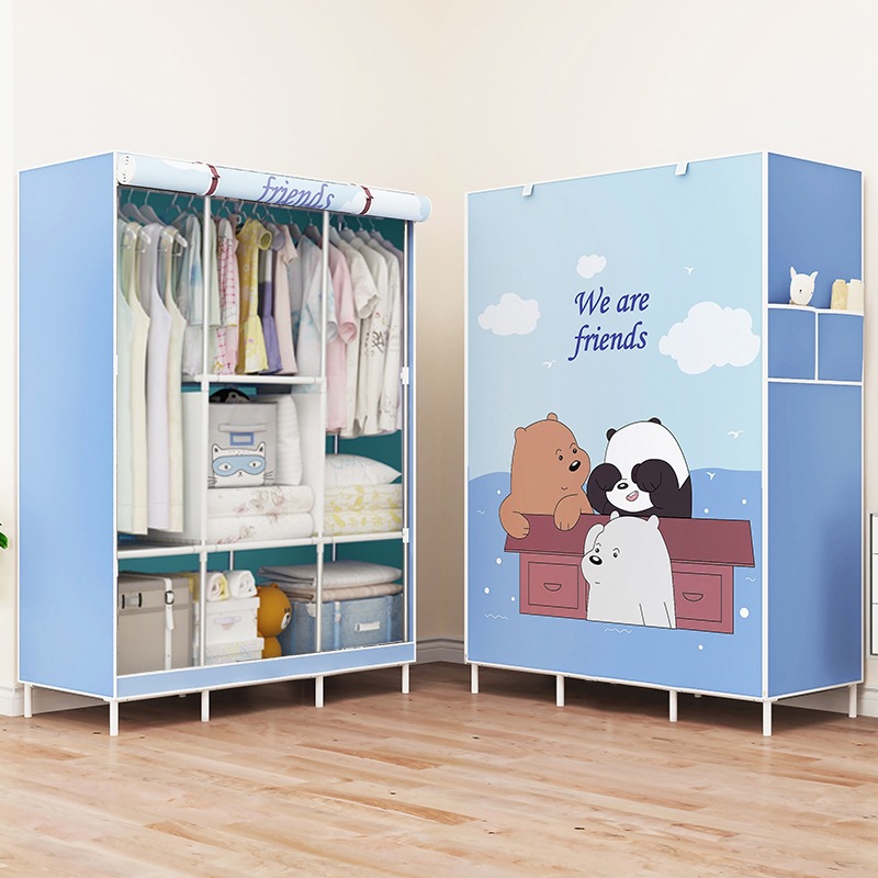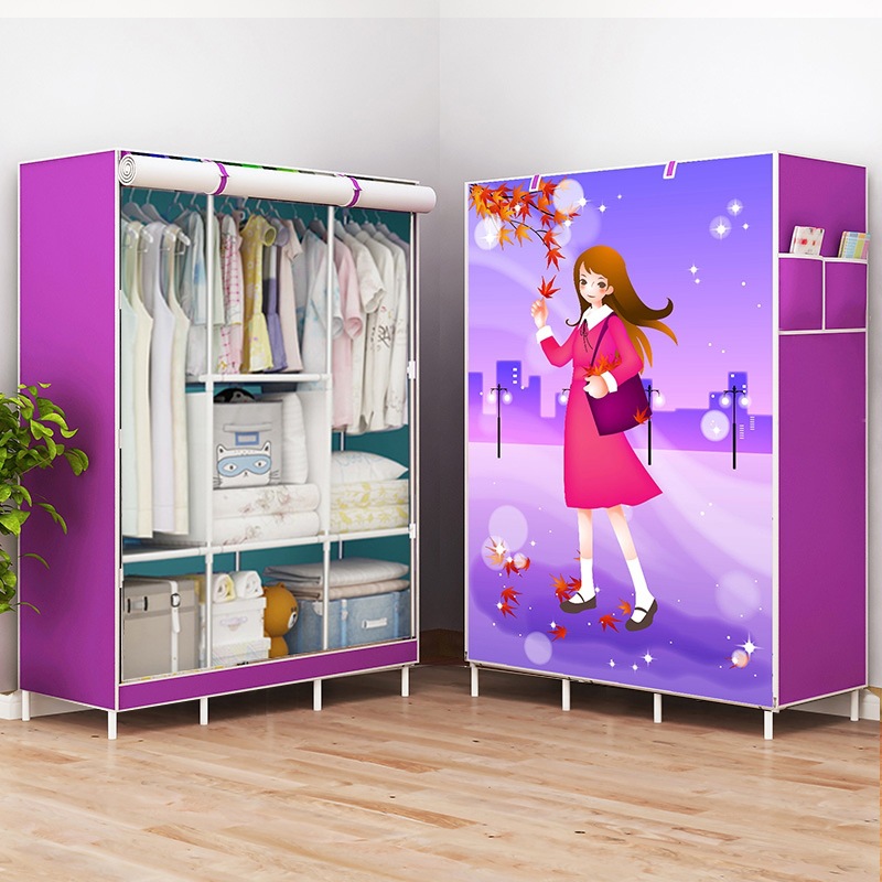 Simple Wardrobe Dormitory Clothes Cabinet Simple Economical Assembly Fabric Wardrobe Storage Cabinet Double Steel Pipe Fabric Wardrobe Wholesale