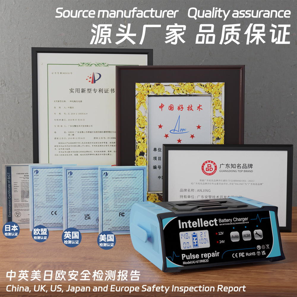 Cross-border 12V Car Battery Charger Intelligent Pulse Repair LCD Display Motorcycle SUV Battery Charger