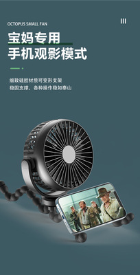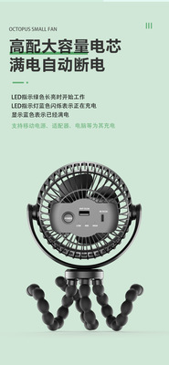 Cross-border new octopus fan USB mini fan baby stroller stand fan car portable fan