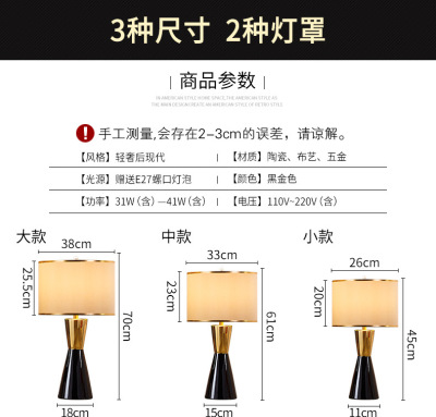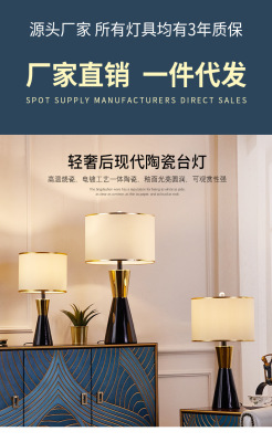 American light luxury ceramic table lamp, Nordic bedroom bedside lamp, living room decoration, European style hotel, simple modern creative lamp