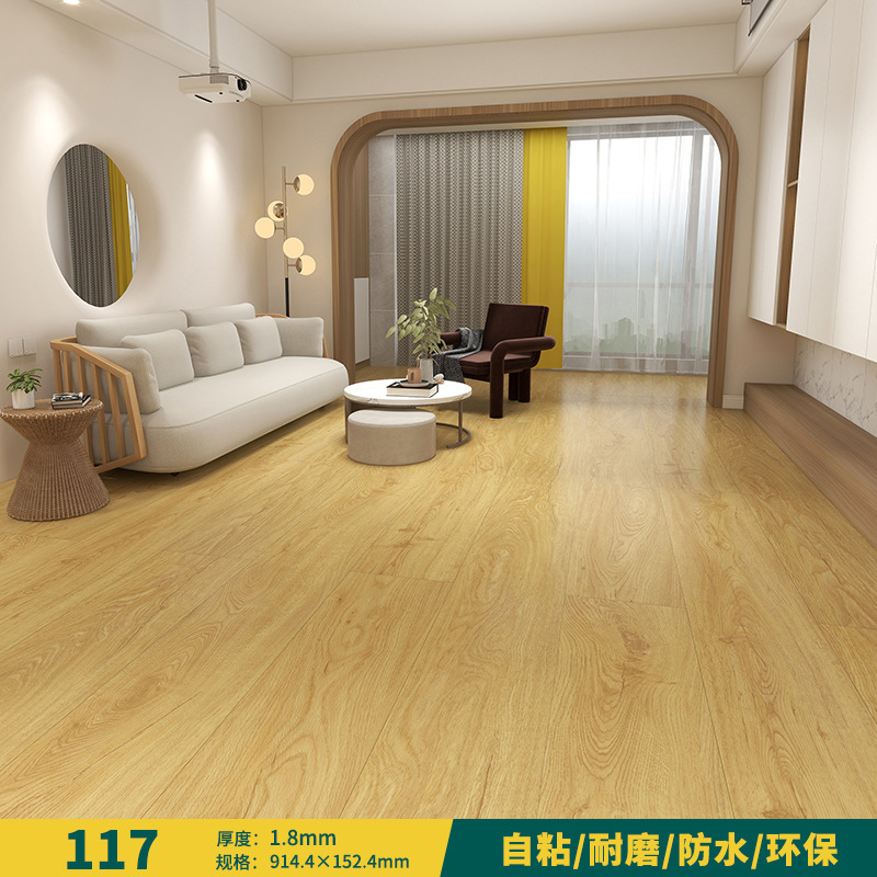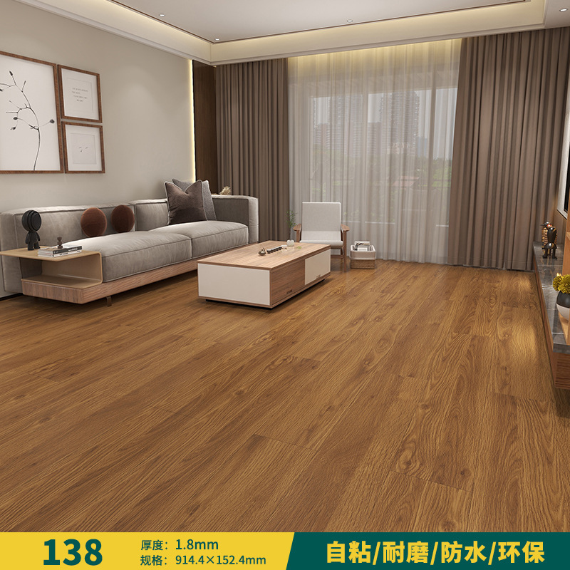 Factory wholesale rent house wood grain waterproof PVC self-adhesive home use wear-resistant glueless floor mat