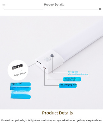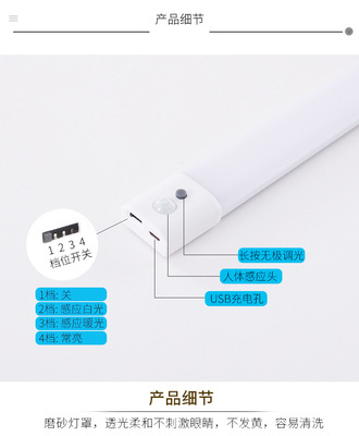 Ultra-thin long bar sensor cabinet light human sensor lamp table lamp night light wholesale LED light control dormitory reading