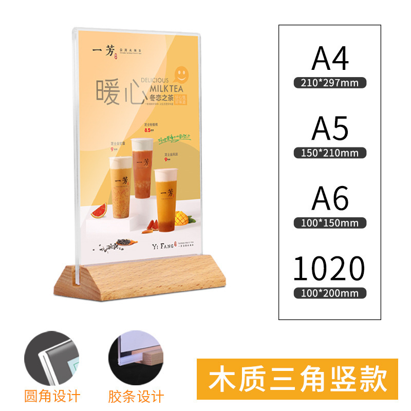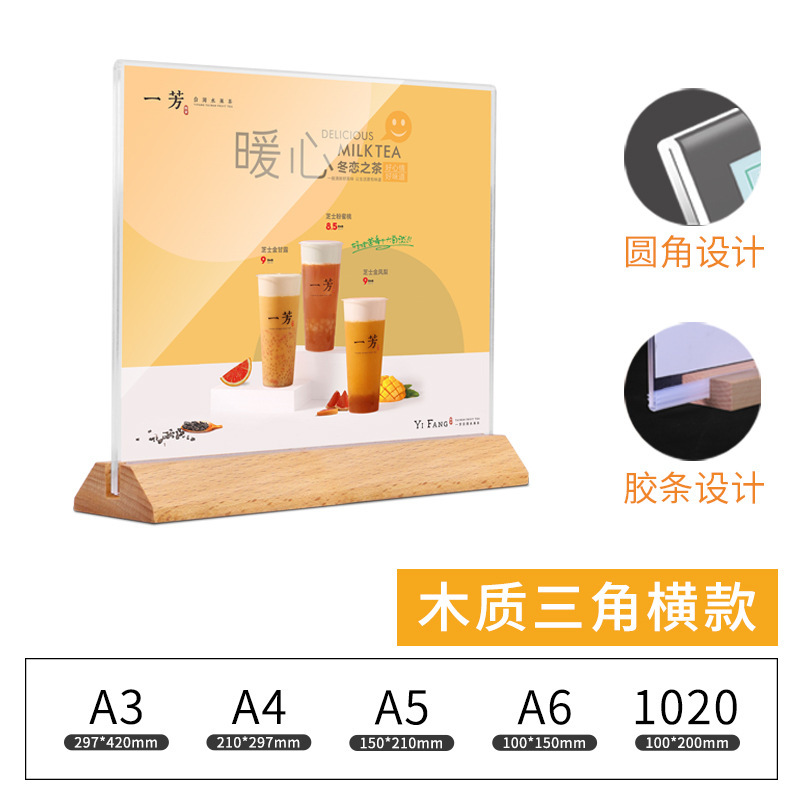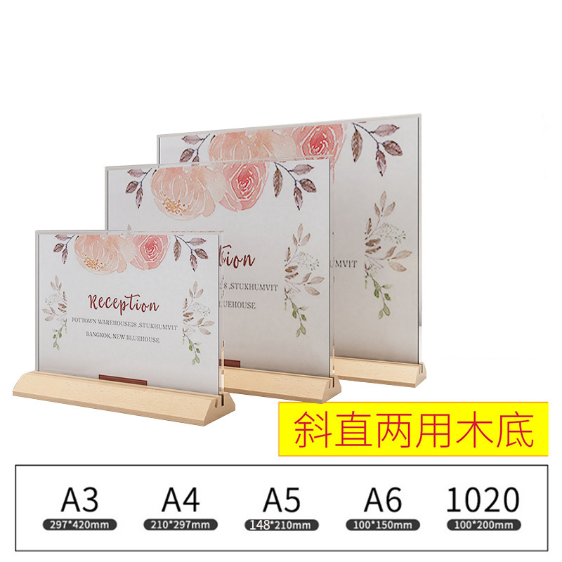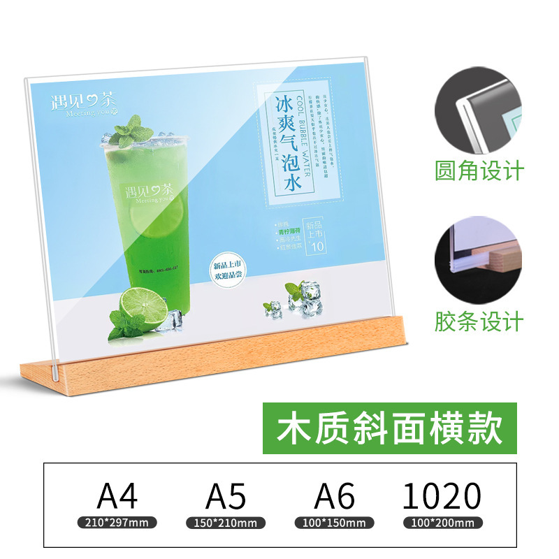 Acrylic A4 Desktop Nameplate Stand Price Tag Card Wooden Restaurant Menu Display Sign Beechwood Nameplate
