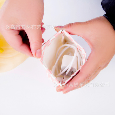 迷你棋盤格彈片自動閉合PU化妝包便攜式數碼產品收納包方格收納袋