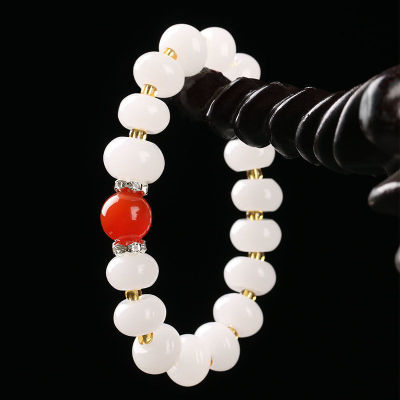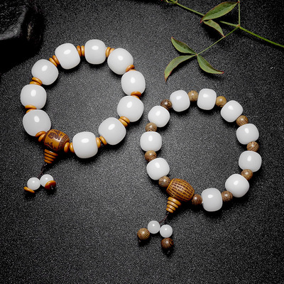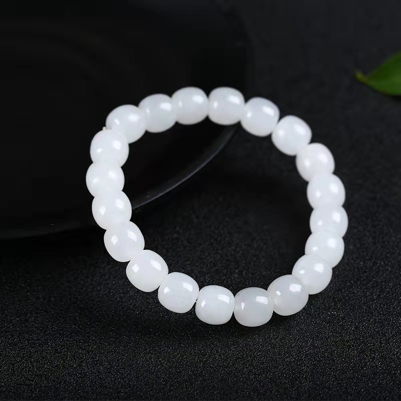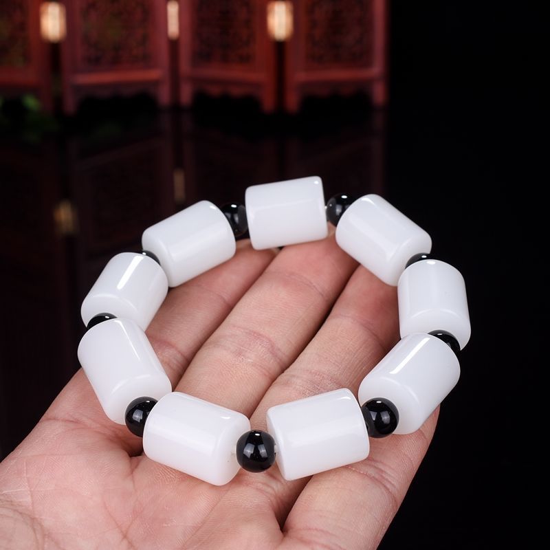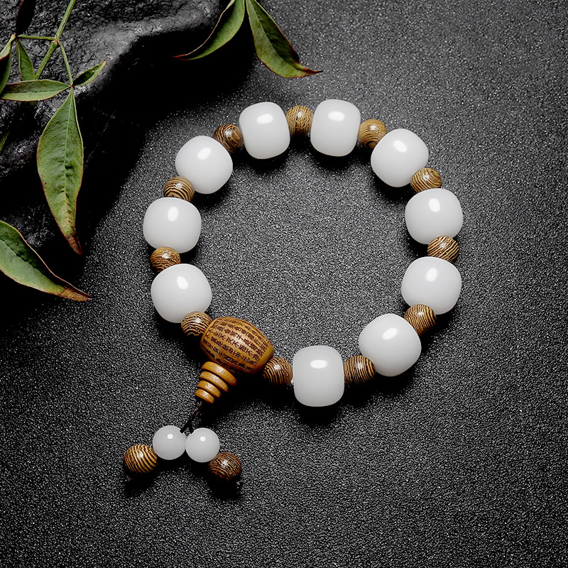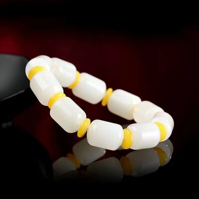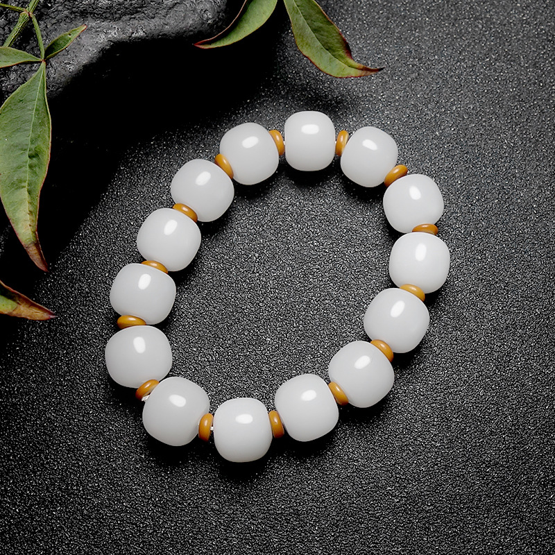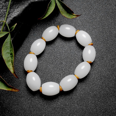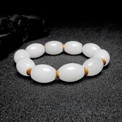 Wholesale Handmade Jadeite Hand Chain with Apple Pearls for Men, Xinjiang Hetian White Jade with Golden Thread, Traditional Shape