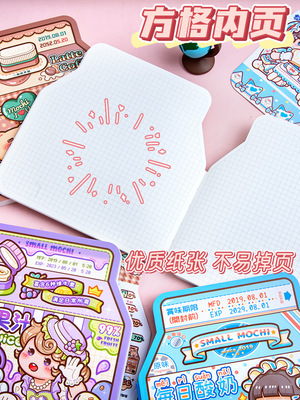 小麻薯飲料盒手賬本高顏值方方本少女心手帳本文藝精緻方格筆記本