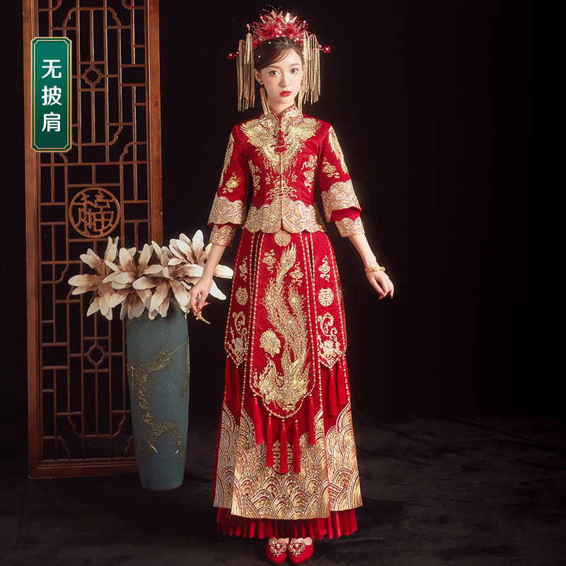 Xiuhe Bride 2024 New Wedding Dress 2023 Chinese Wedding Clothes Small Size Dragon and Phoenix Coat Ancient Bridal Gown