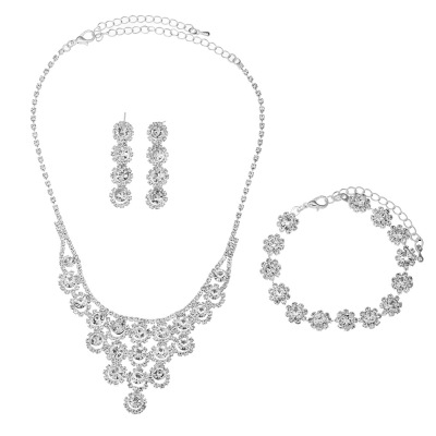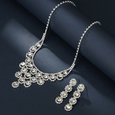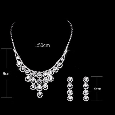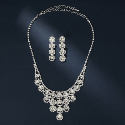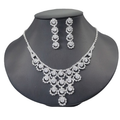 跨境高檔水晶泡泡滿鑽 耳環項鍊新娘套裝 女人配飾 首飾套裝